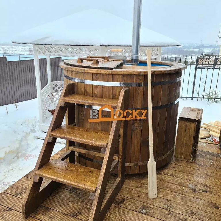 Купель, диаметр 1.5 метра с внутренней печью.