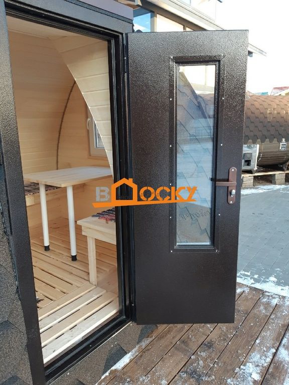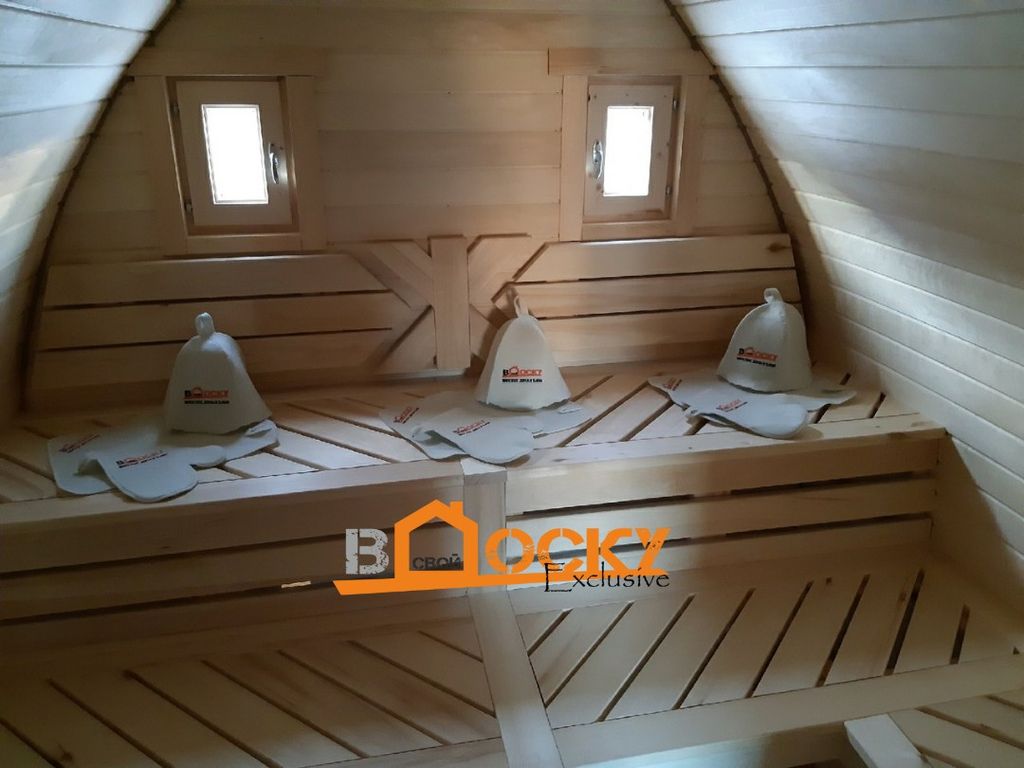 Баня имеет конусовидное сечение и добавляет вашему участку свою изюминку, смотря на такую баню можно пофантазировать и перенестись в эпоху викингов-завоевателей, прикупив себе тематические банные шапки.