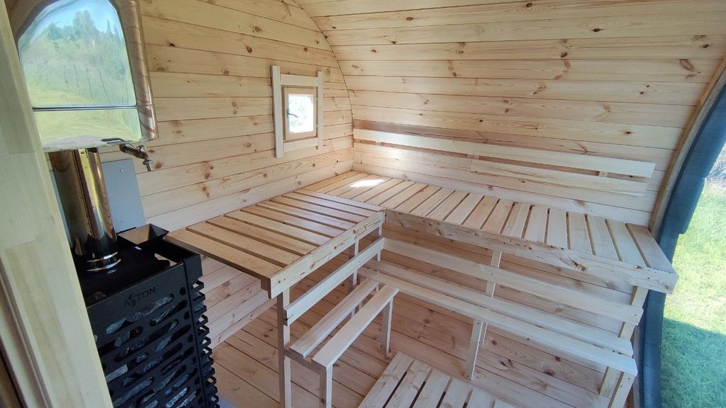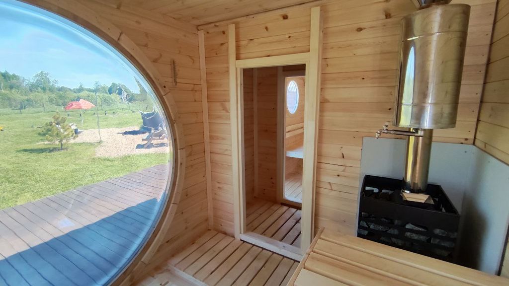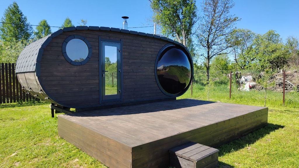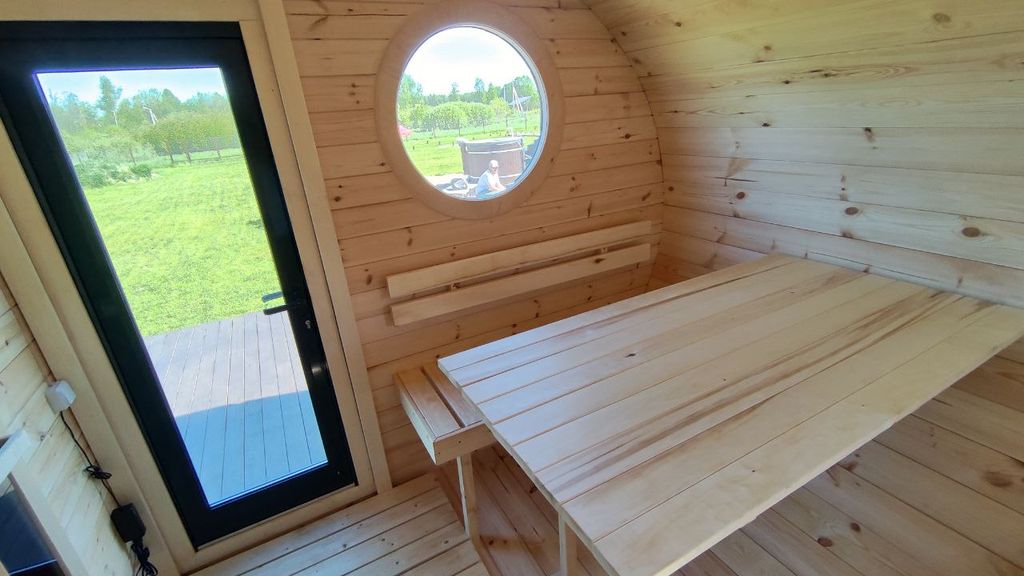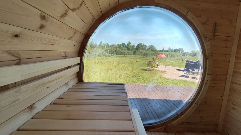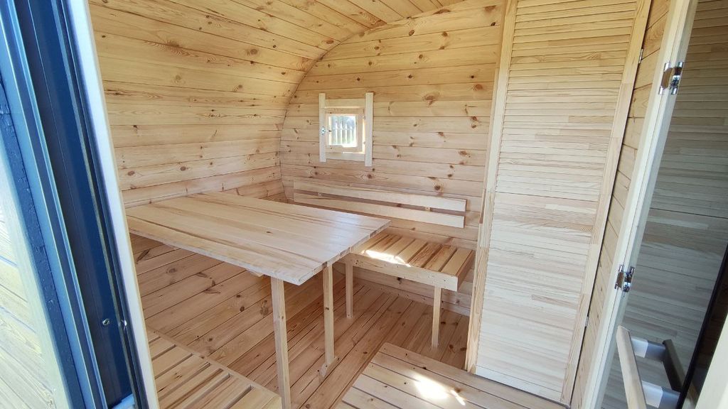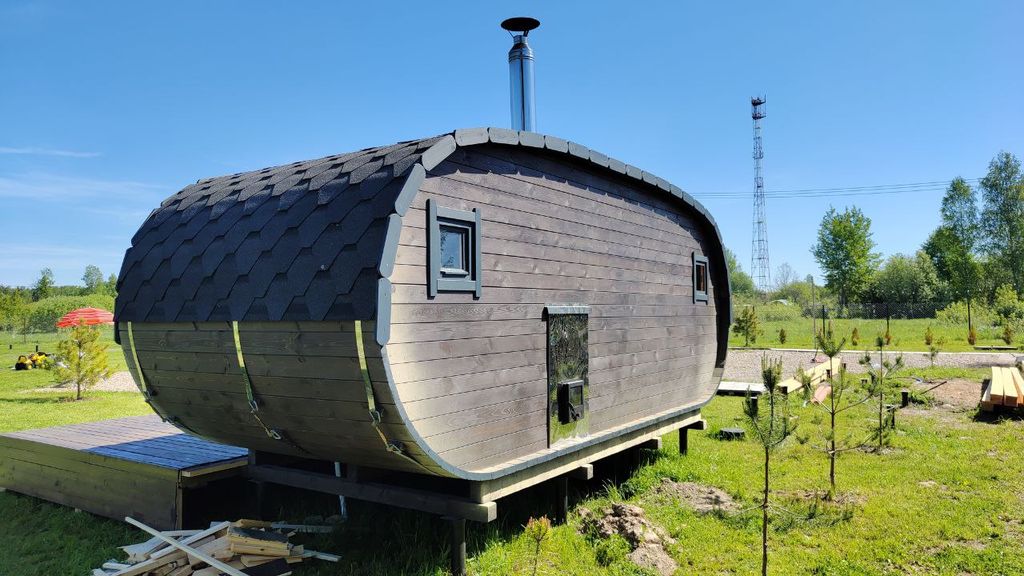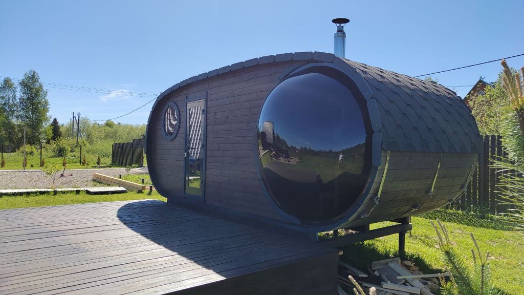 Особенностью бани является- панорамное, купольное окно, которое будет источником дневного света в вашей парной и создаст ощущение полной свободы и отсутствие замнутого пространства.