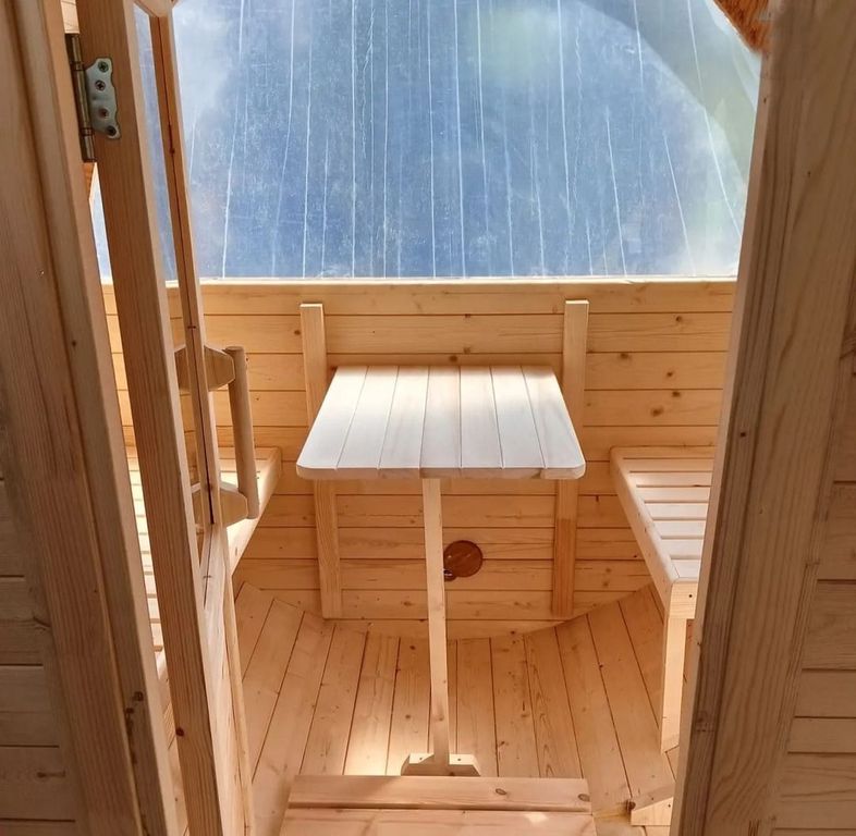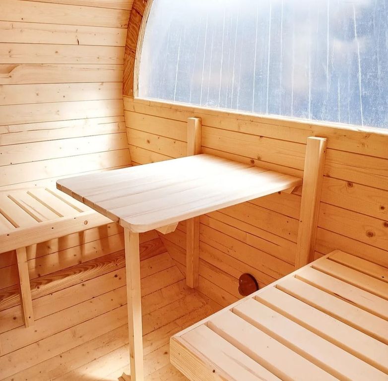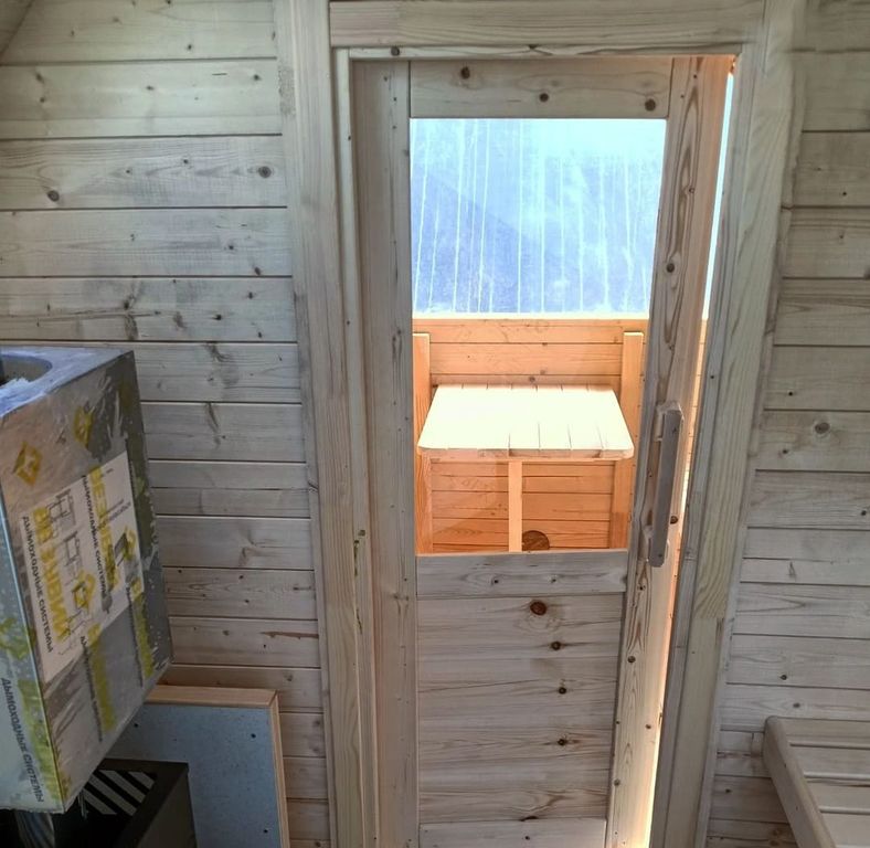 - Удобные и полкИ в парной, которые позволяют сполна насладиться видами из окна