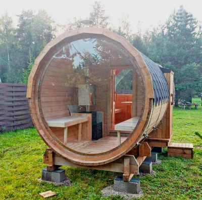 Баня с двумя панорамными окнами. "Распашонка"