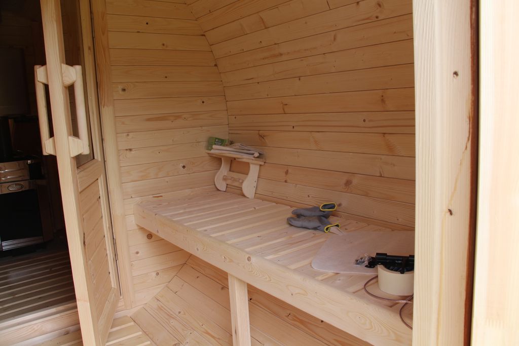 - Баня имеет два отделения: полностью оборудованную парилку и уютно-комфортный предбанник в котором можно не только посидеть, но и полежать после прогрева в парной. Является отличным вариантом для того, кто хочет получить полноценную баню с минимальными усилиями и в короткий срок.
