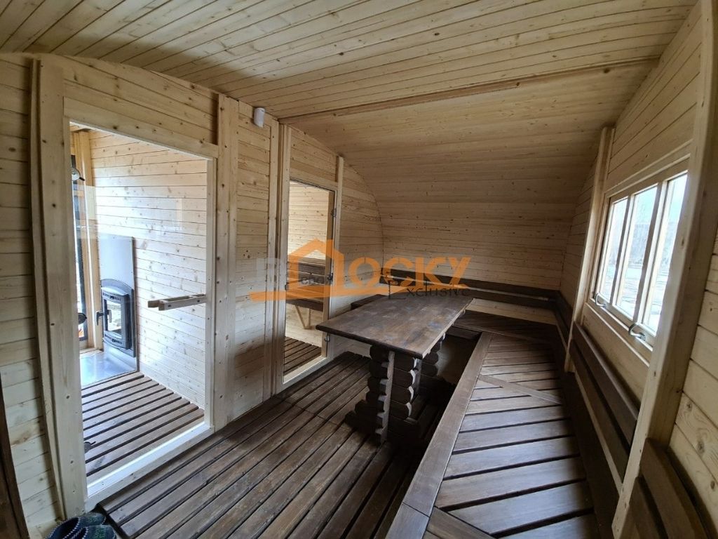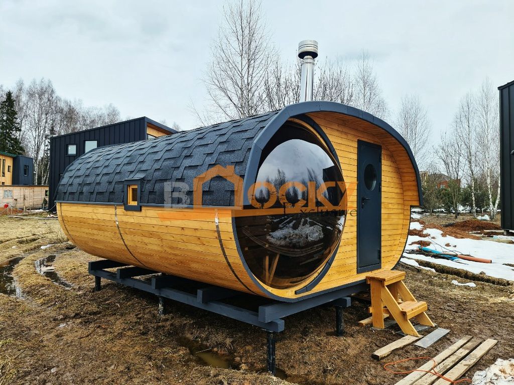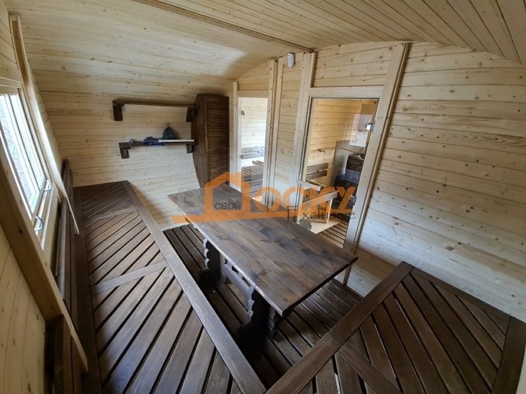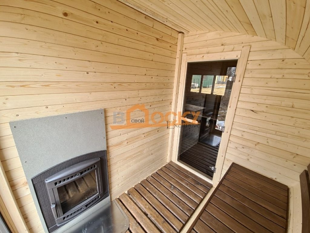 Особенностью бани является- панорамное, купольное окно, которое будет источником дневного света в вашей парной и создаст ощущение полной свободы и отсутствие замнутого пространства.